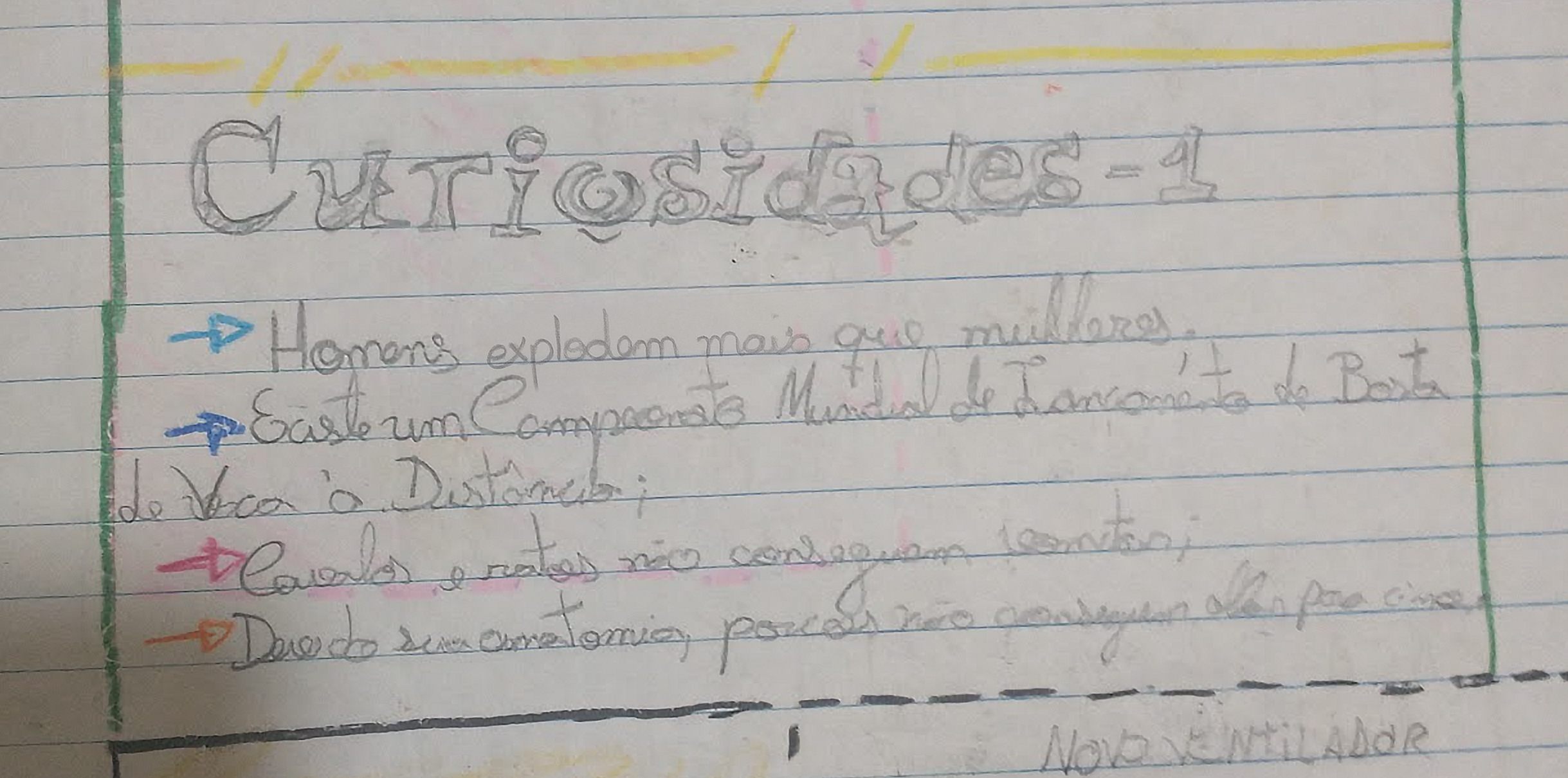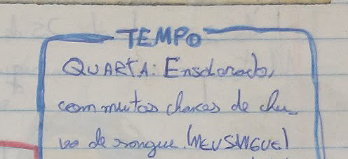(De aqui em diante, vou colocar algumas imagens para vocês verem. Tomei a liberdade de deixar a imagem da maneira mais crua possível, para que vocês possam, assim como eu, quebrar a cabeça tentando decifrar meus garranchos horríveis infantis. Mas, caso você queira ter certeza de alguma palavra que não leu, pode perguntar nos comentários ou consultar a descrição da imagem).